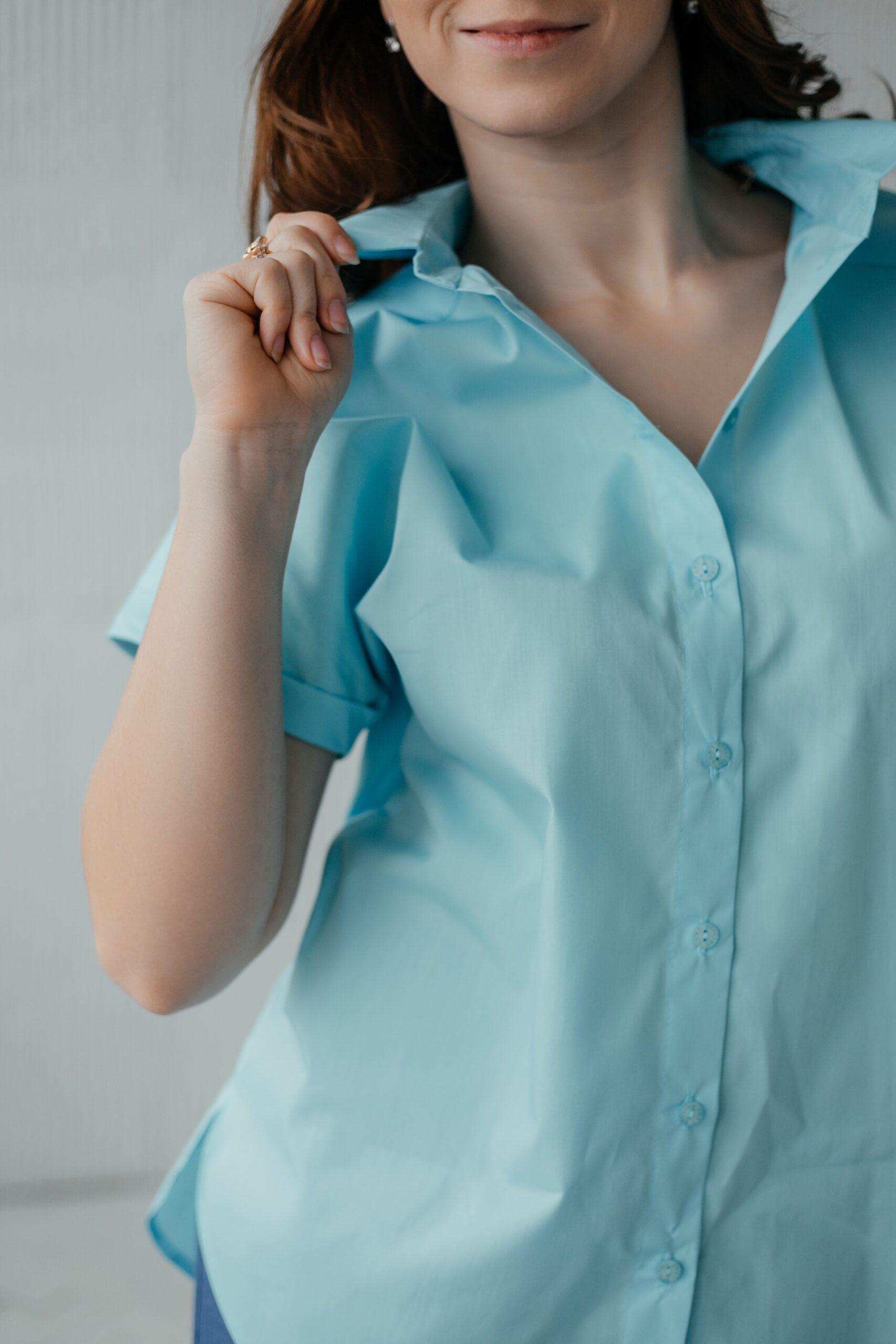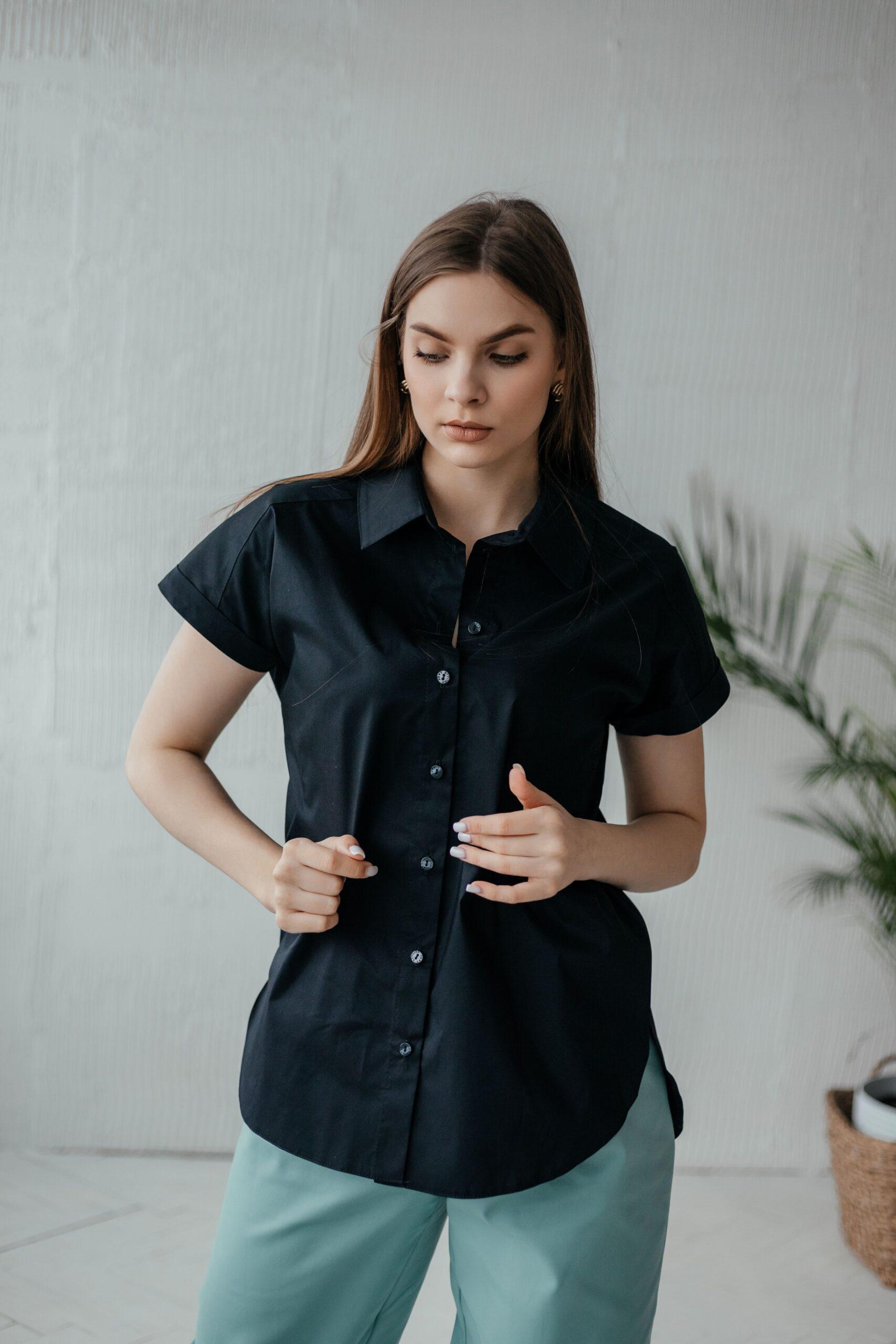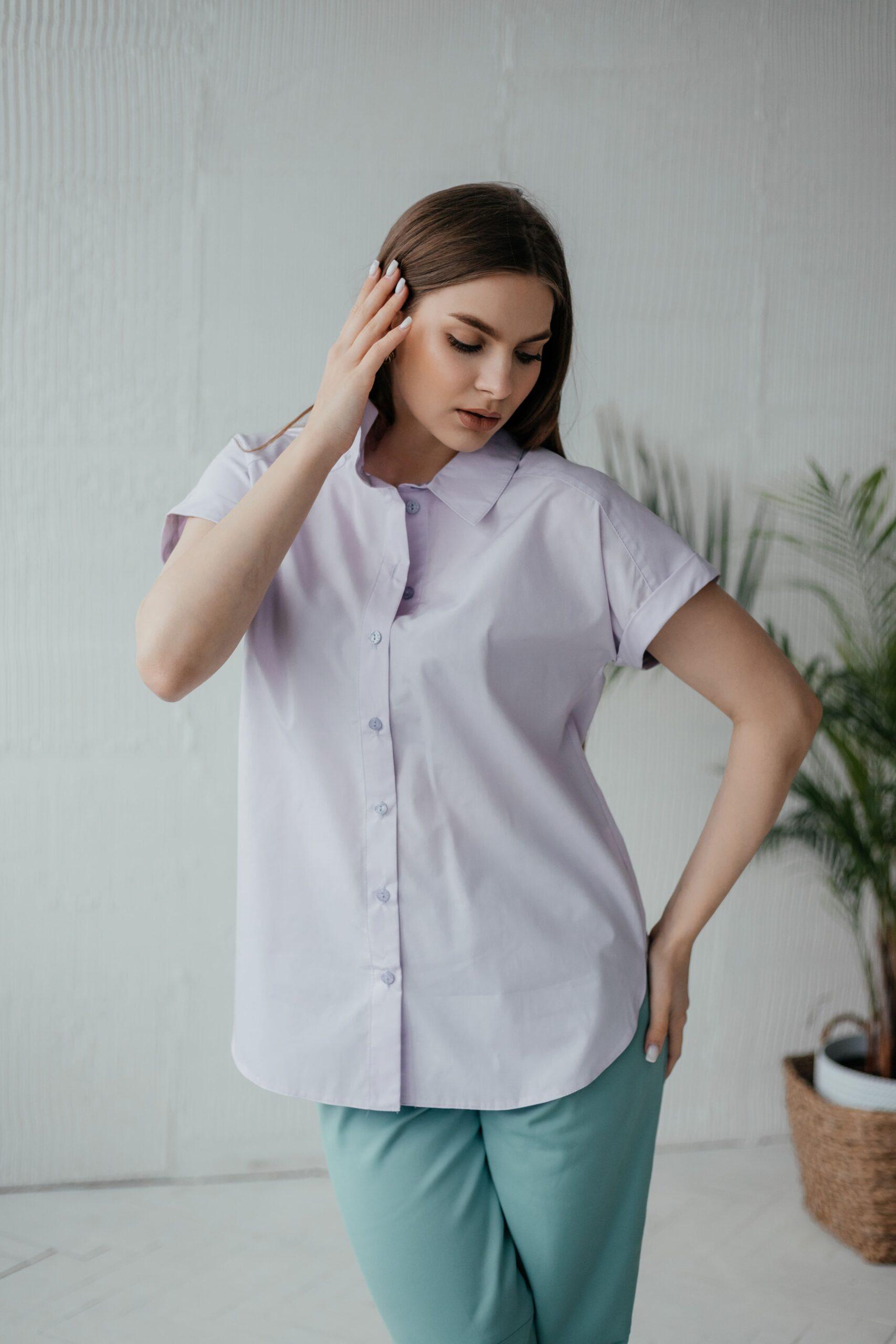 Блузка женская с коротким рукавом, на пуговицах. Классическая модель.