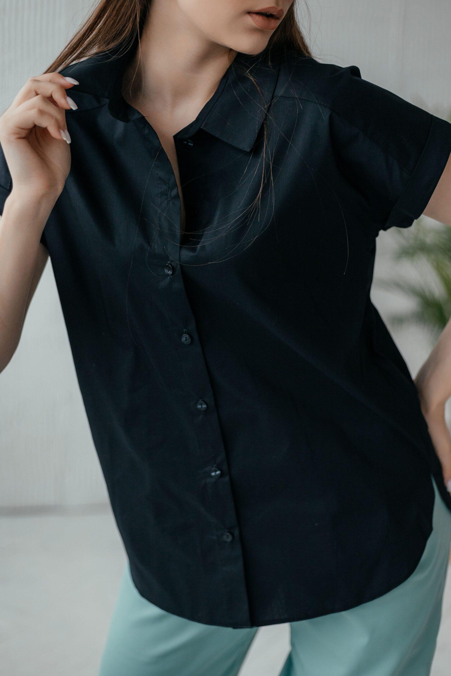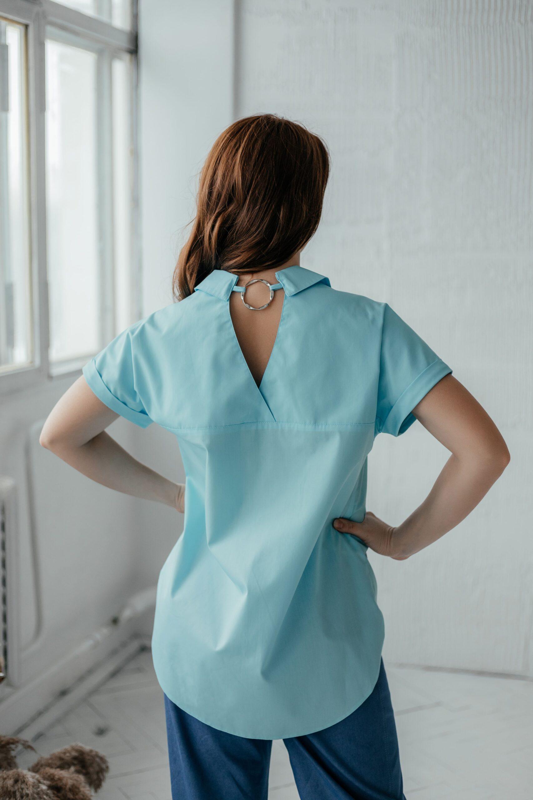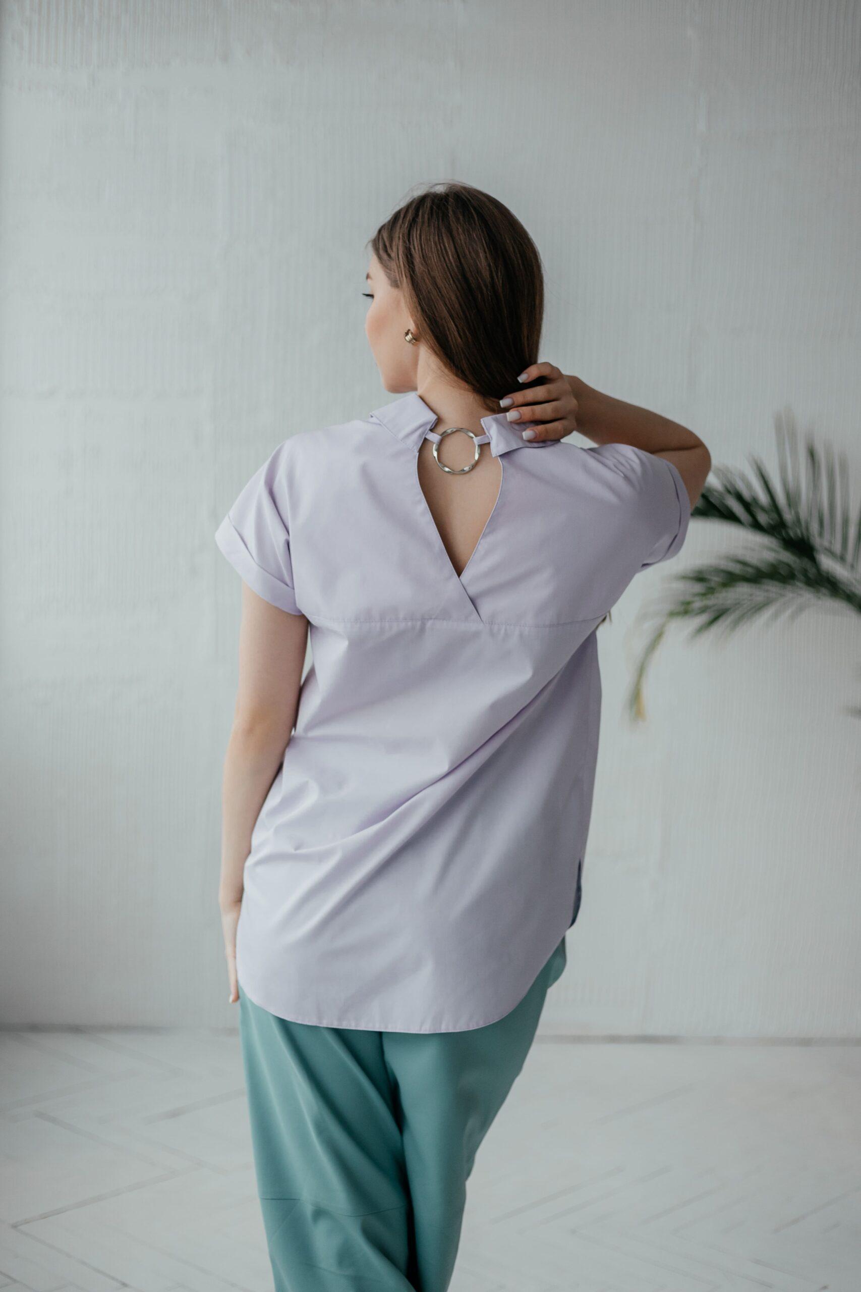Блузка женская с коротким рукавом, на пуговицах. Классическая модель.