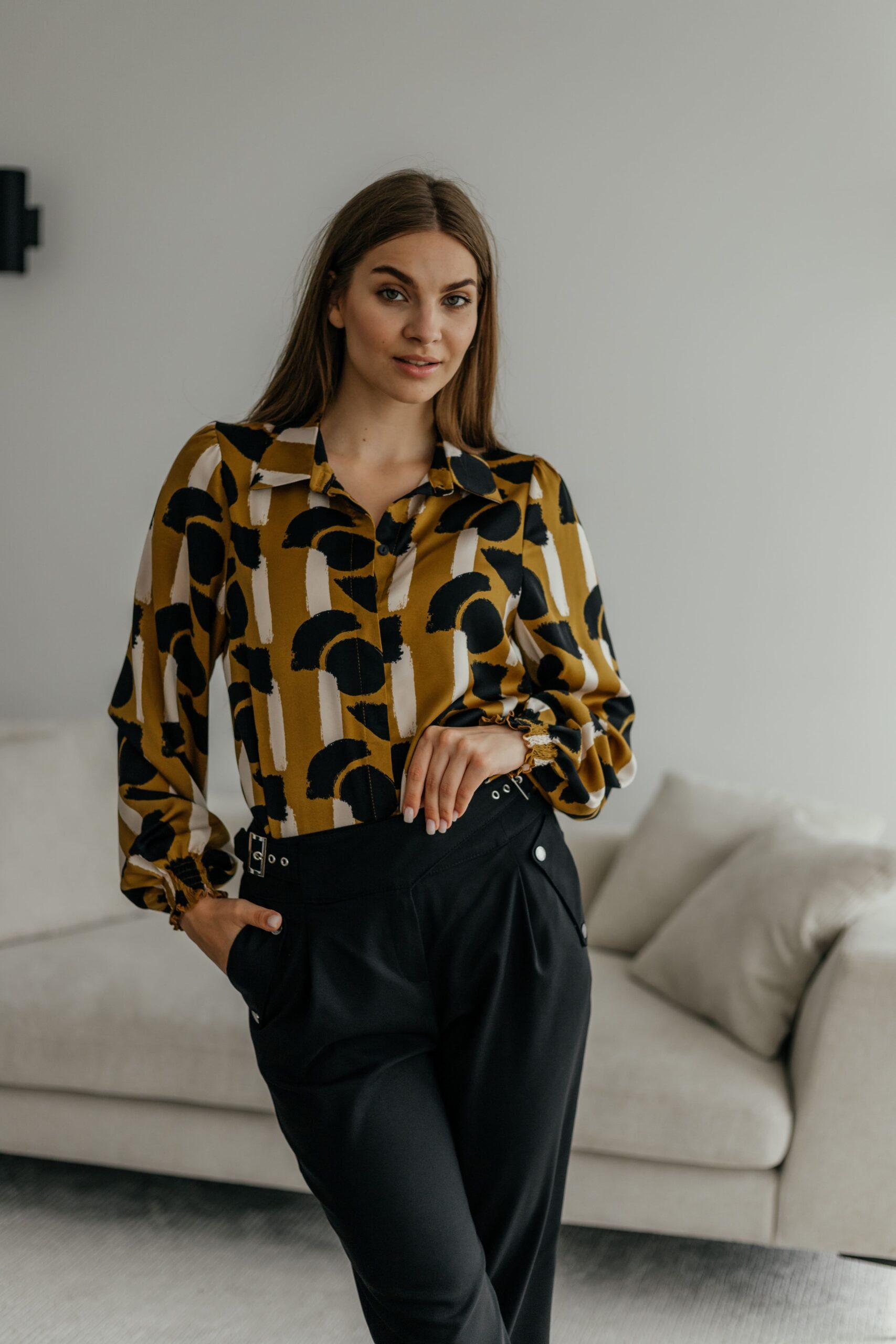 Блузка женская, с длинным рукавом , спереди планка. Модель классического кроя.