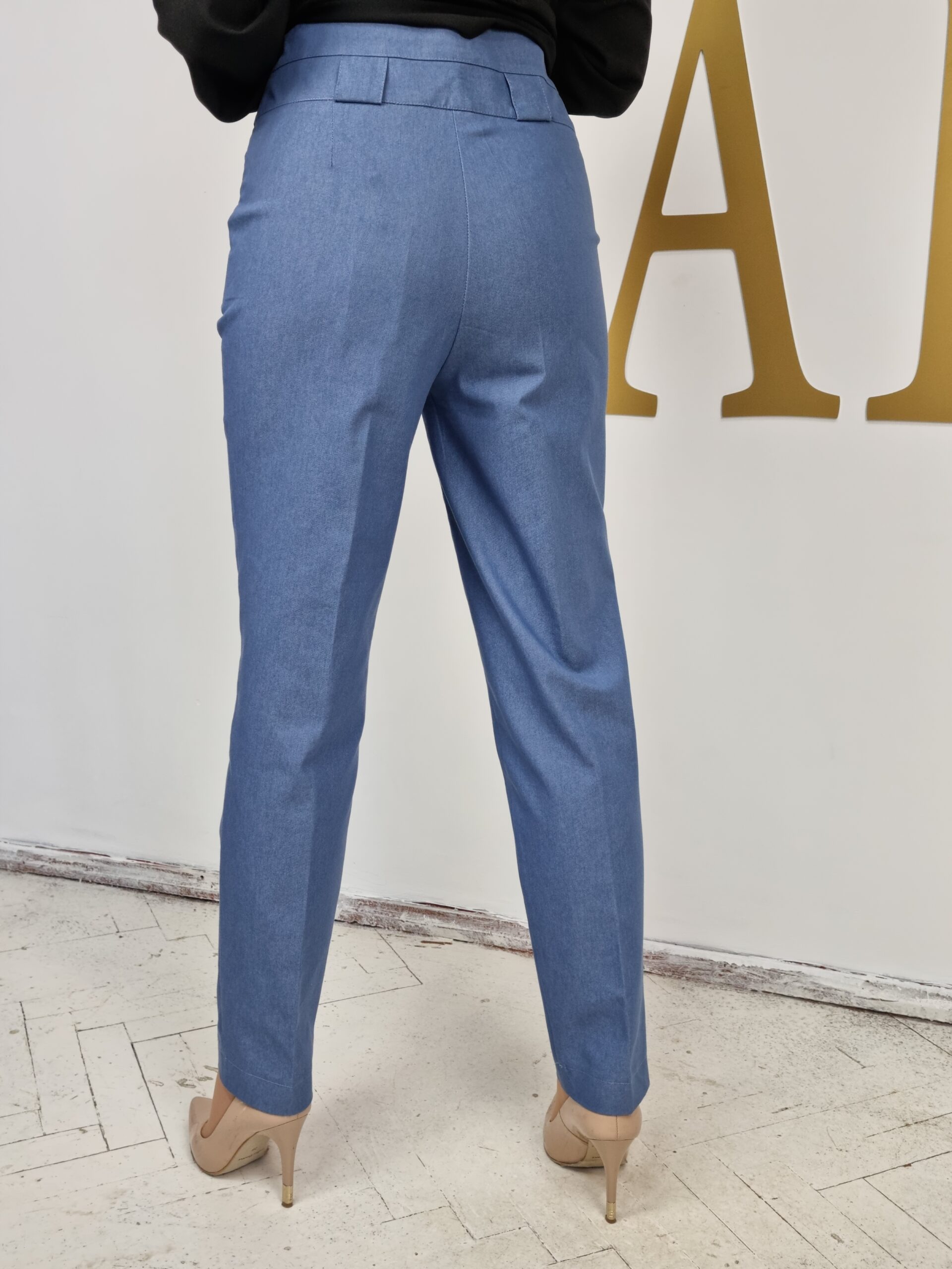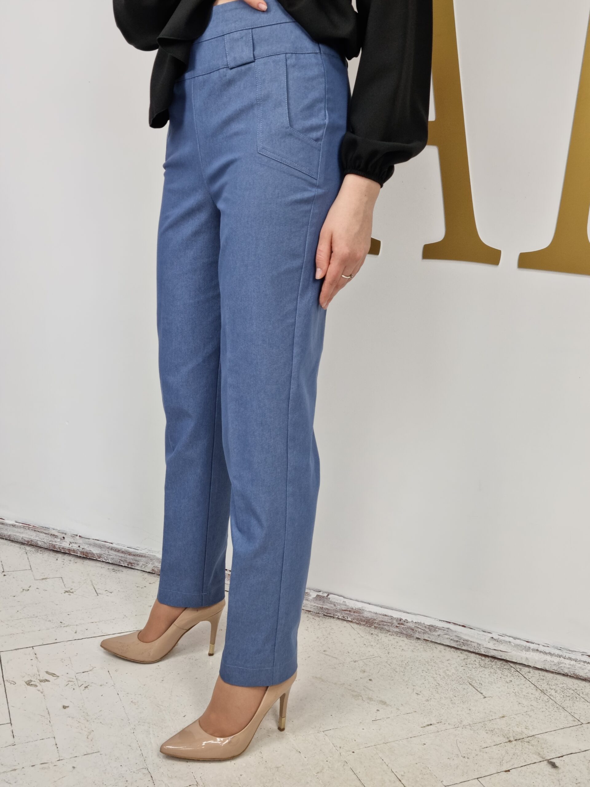 Брюки женские, немного заужены к низу , длина семь восьмых. Высокая линия талии. Состав: хлопок 72%, полиэстер 26%, эластан 2%.