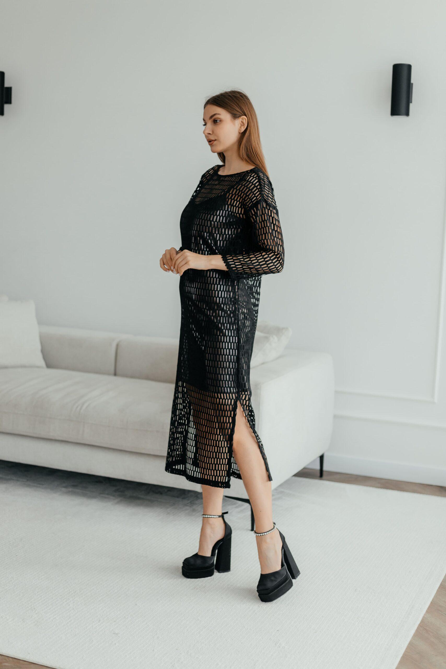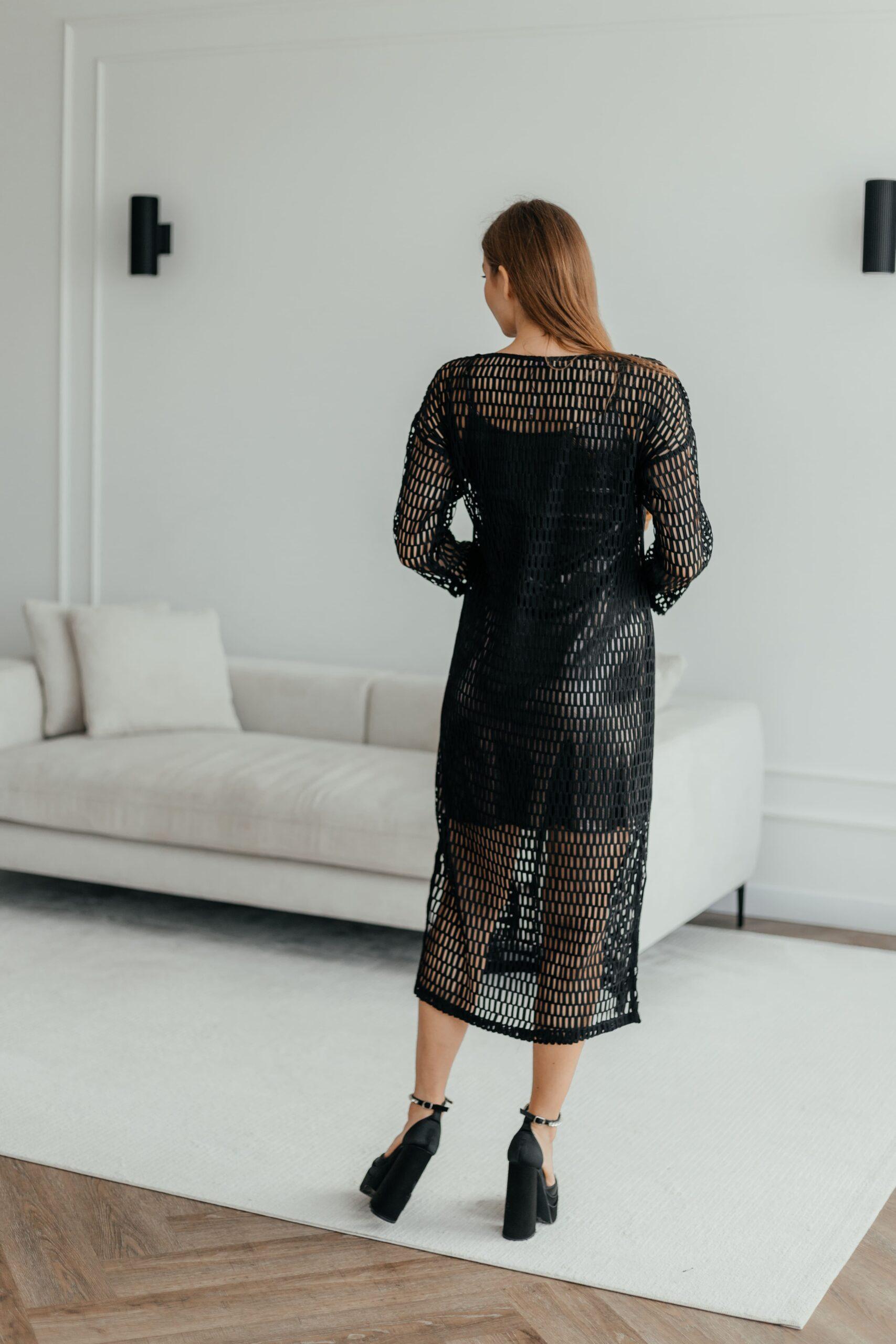Платье женское, стильное. Платье состоит из мини платья комбинации на бретелях и сетки с четвертным рукавом миди длины.